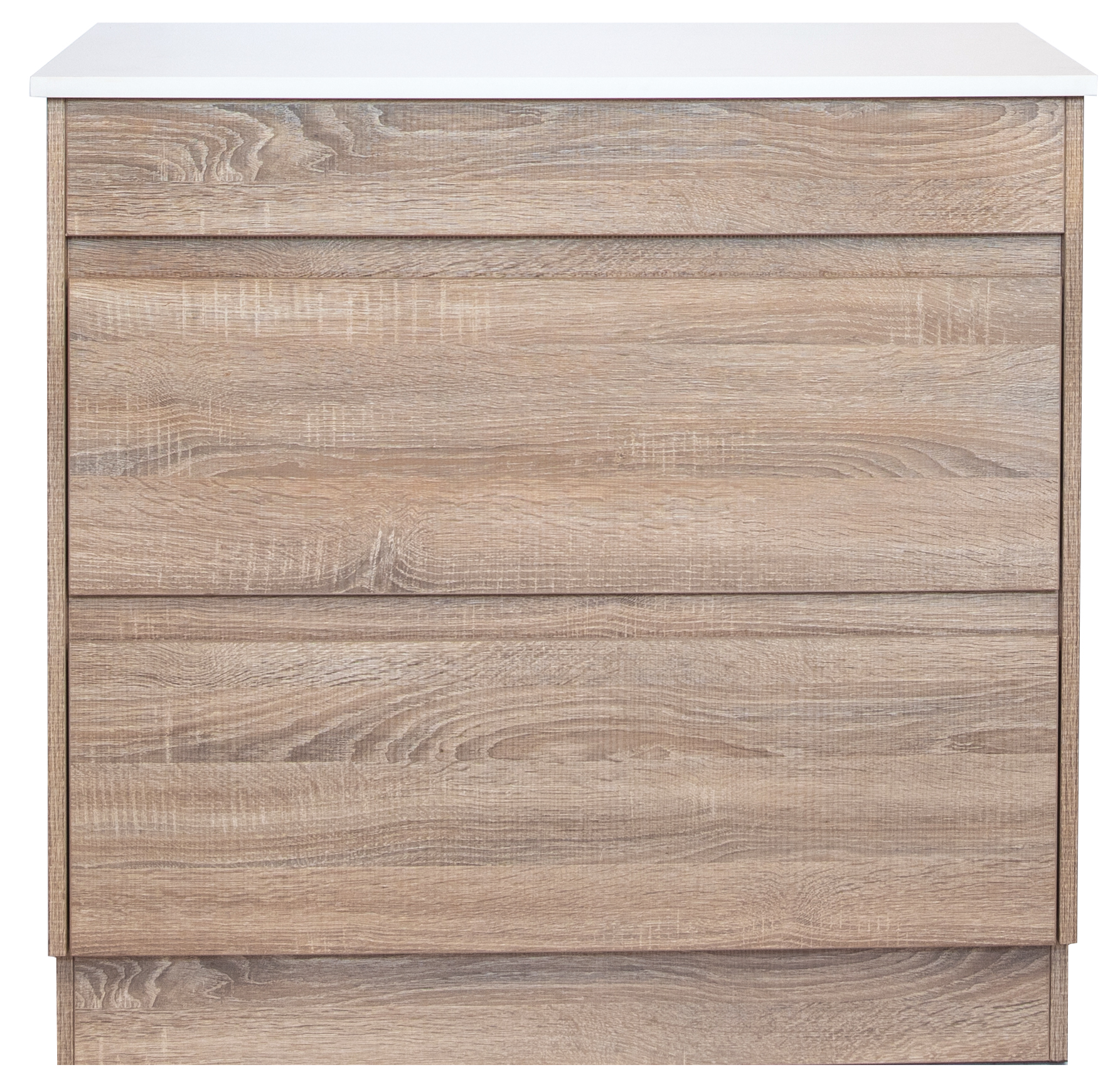 The Prime Oak Range of vanities have a high quality moisture resistant finish. The high quality soft close under-mount drawer runners are durable and strong. They are under-mount so cannot be seen and are very easy to remove. Solid doors with finger pull handles are also a feature.
